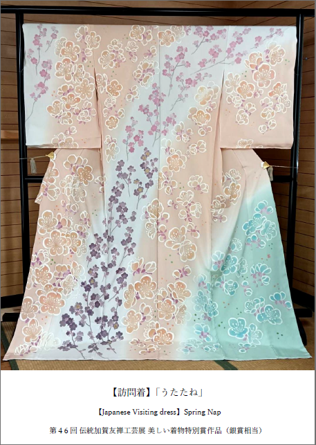 第46回伝統加賀友禅工芸展 にて「美しい着物特別賞」を受賞しています。